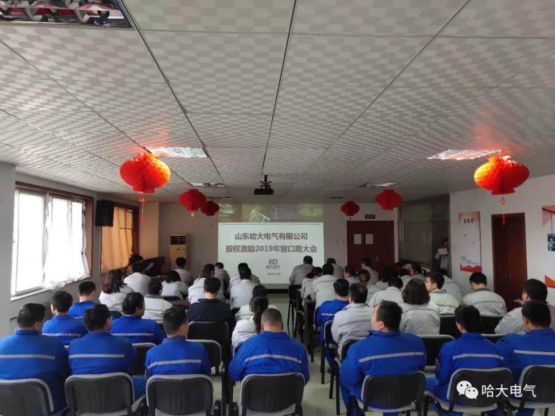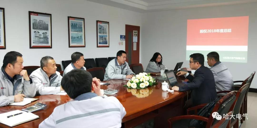 2019年3月30日下午,山東哈大電氣有限公司召開了2019年度第三個(gè)窗口期股東大會(huì),公司31名內(nèi)部股東及各部門骨干代表參加了本次會(huì)議,會(huì)議在上海經(jīng)邦咨詢鄧?yán)蠋煹膮⑴c下順利召開。